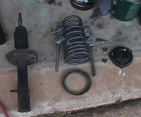 Put the cover back on. The new ST lower springs I used said to cut out the bottom of the top rubber part and to increase the suspension travel. I cut it with a hack saw and glued it back to the cover with some RTV silicone gasket compound.