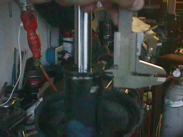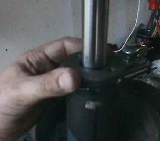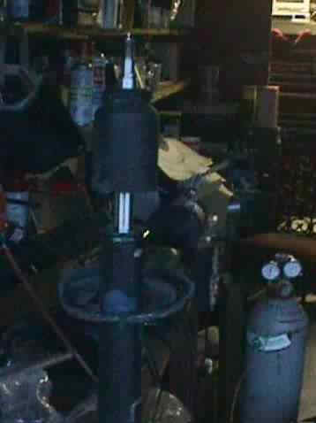 Screw the top on. Note that the Koni has a round top nut thing so you can't grip it with a wrench or the big vise. The Monroe had a hex shaped nut. Look at your replacement set beforehand and plan accordingly.