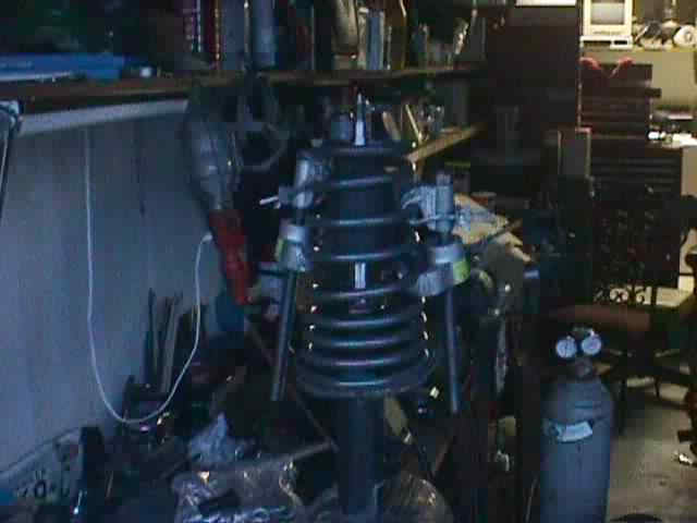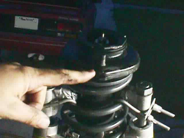 Place big nut thing from the strut top thing in your big vice to hold it, unless you have a wrench that big, which I did not. Remove top nut. You can use an impact wrench for this and avoid holding the top with the vice, but I did not want to damage the Monroe's I am replacing so I did it the proper way. If you are pitching the old struts, impact wrench away. But, this is how you need to put the new ones back together.
